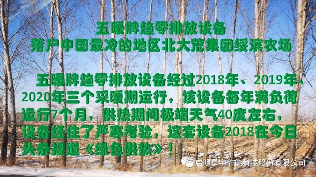 五暖牌趨零排放設(shè)備經(jīng)過(guò)2018年、2019年、2020年三個(gè)采暖期運(yùn)行,該設(shè)備每年滿負(fù)荷運(yùn)行7個(gè)月,供熱期間極端天氣40度左右,設(shè)備經(jīng)住了嚴(yán)寒考驗(yàn),這套設(shè)備2018在今日頭條報(bào)道《綠色供熱》!