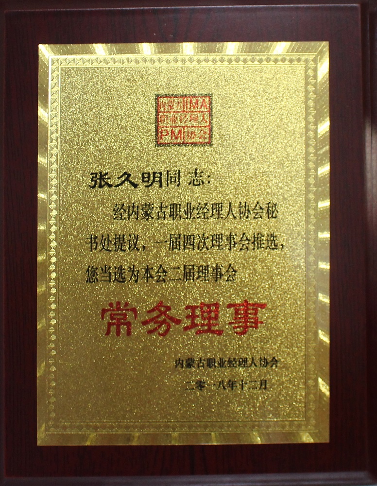 內蒙古職業經理人協會會員證書