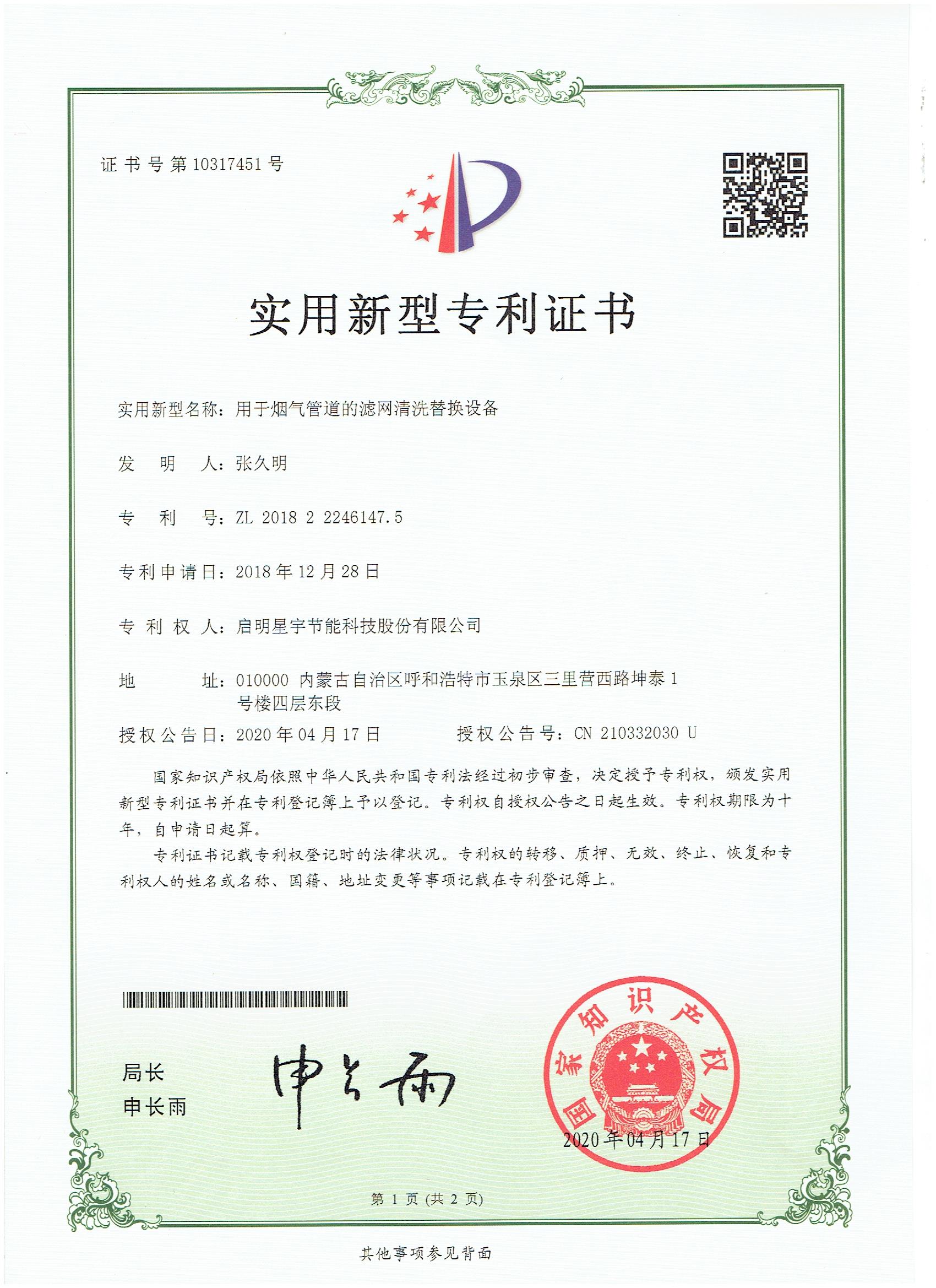用于煙氣管道的濾網(wǎng)清洗替換設(shè)備實用新型專利