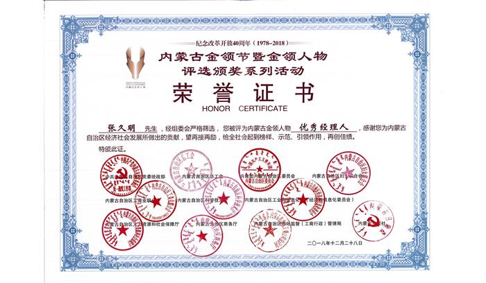 內(nèi)蒙古金領(lǐng)節(jié)暨金領(lǐng)人物評選頒獎系列活動榮譽(yù)證書