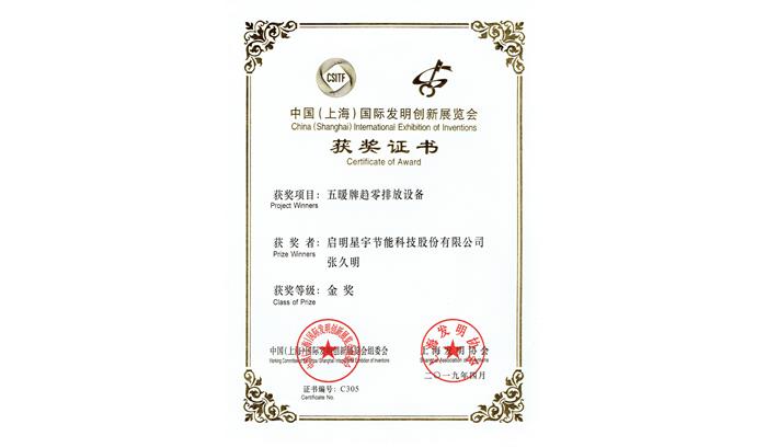 五暖趨零排放設(shè)備金獎(jiǎng)(上海)