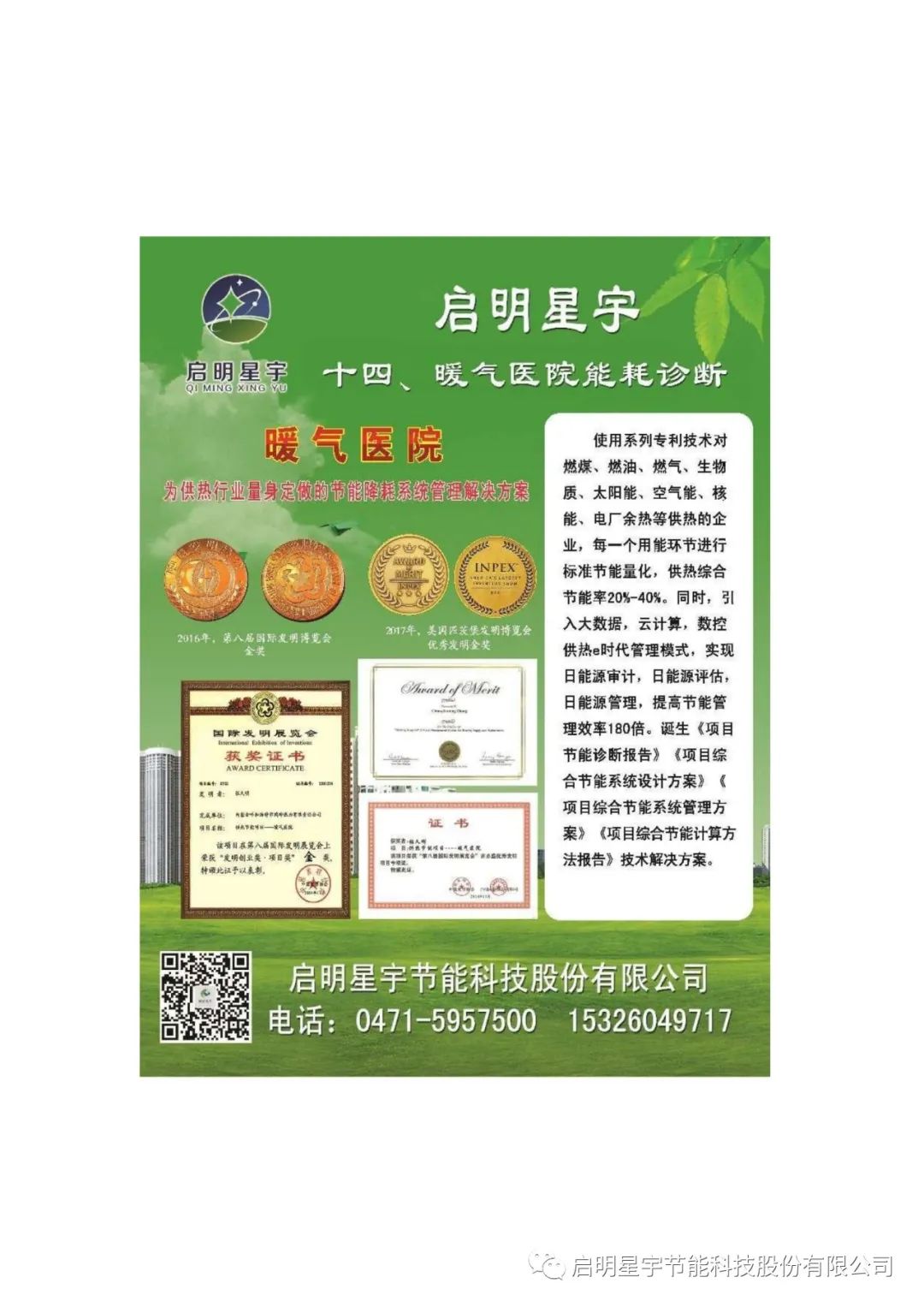 2017年,獲得參加第八屆中國國際節能減排展覽會,獲得“全國節能供暖技術創新獎”,“全國節能供暖最佳貢獻獎”雙項獎。