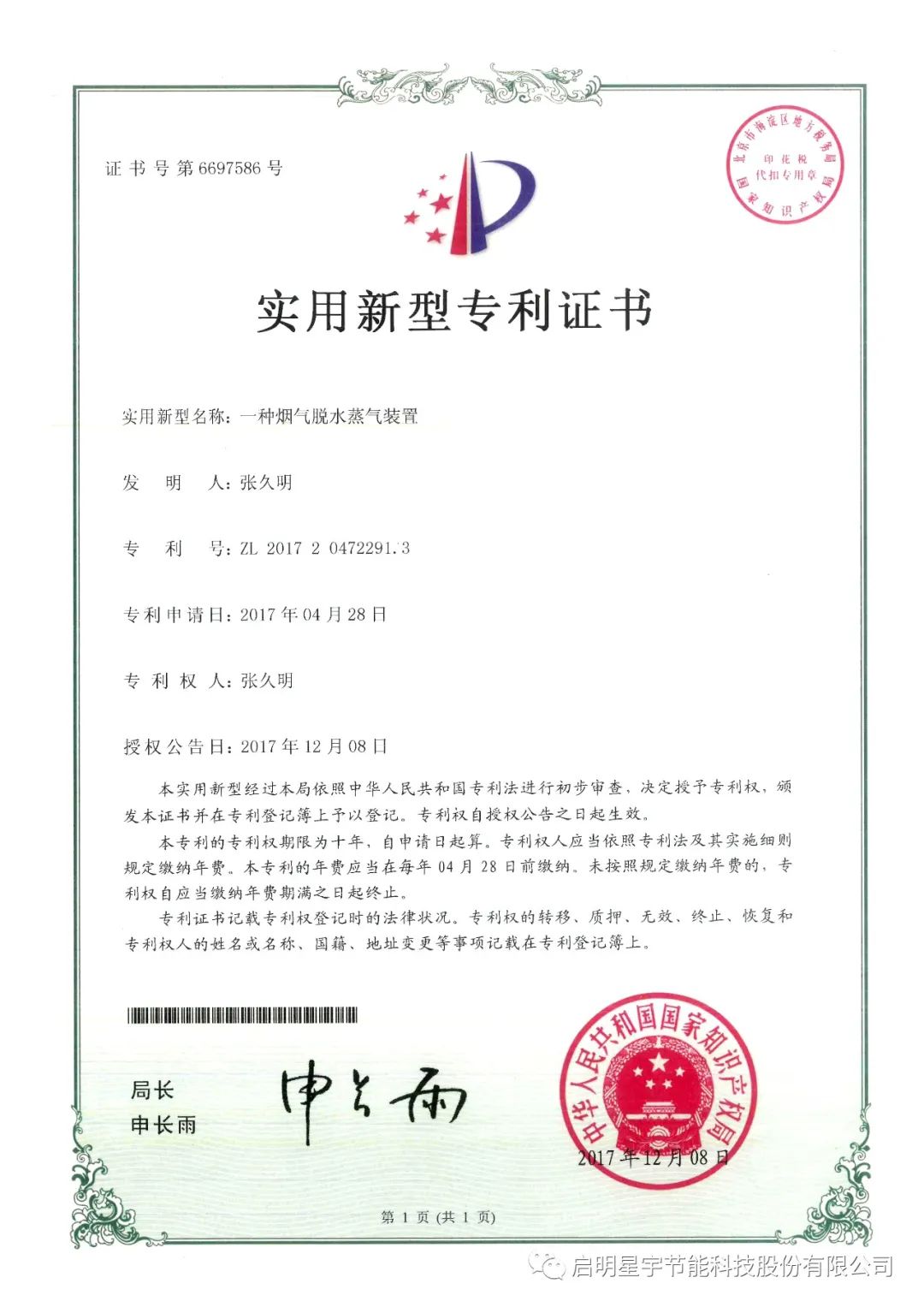 新年巨著,啟明星宇節(jié)能科技股份有限公司《工業(yè)廢氣零排放技術(shù)研究》科研論文在《中國科技人才》期刊成功發(fā)表