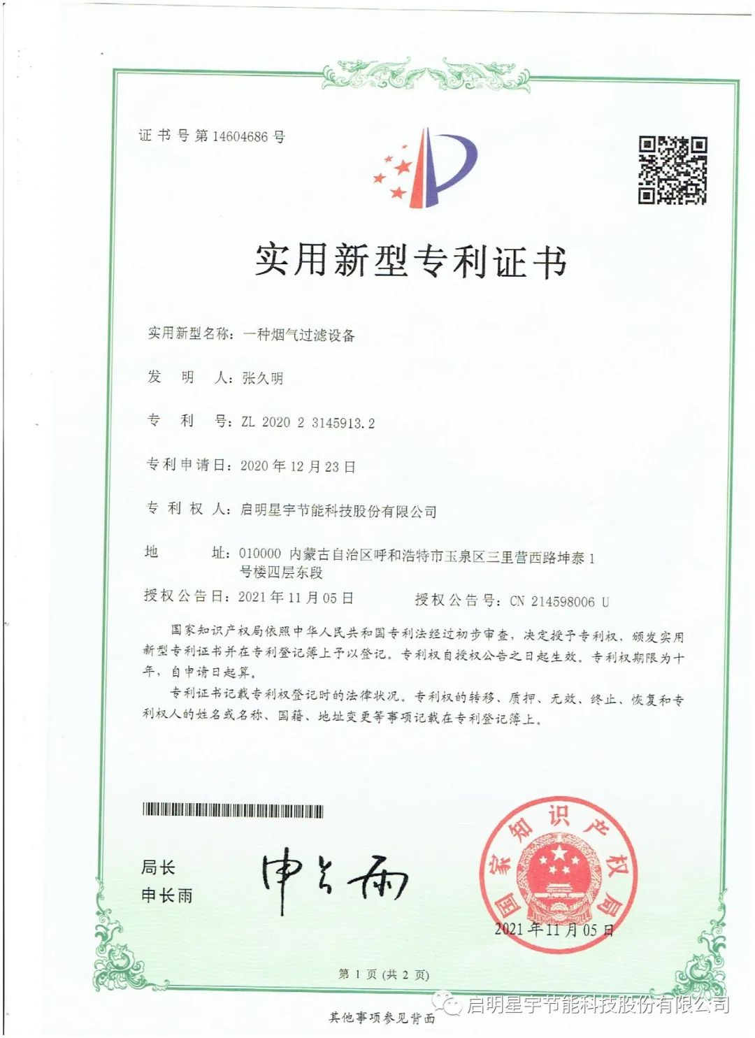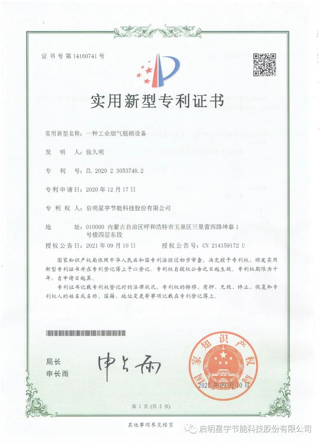 啟明星啟明星宇節(jié)能科技股份有限公司,2024年產品研發(fā)獲獎匯報