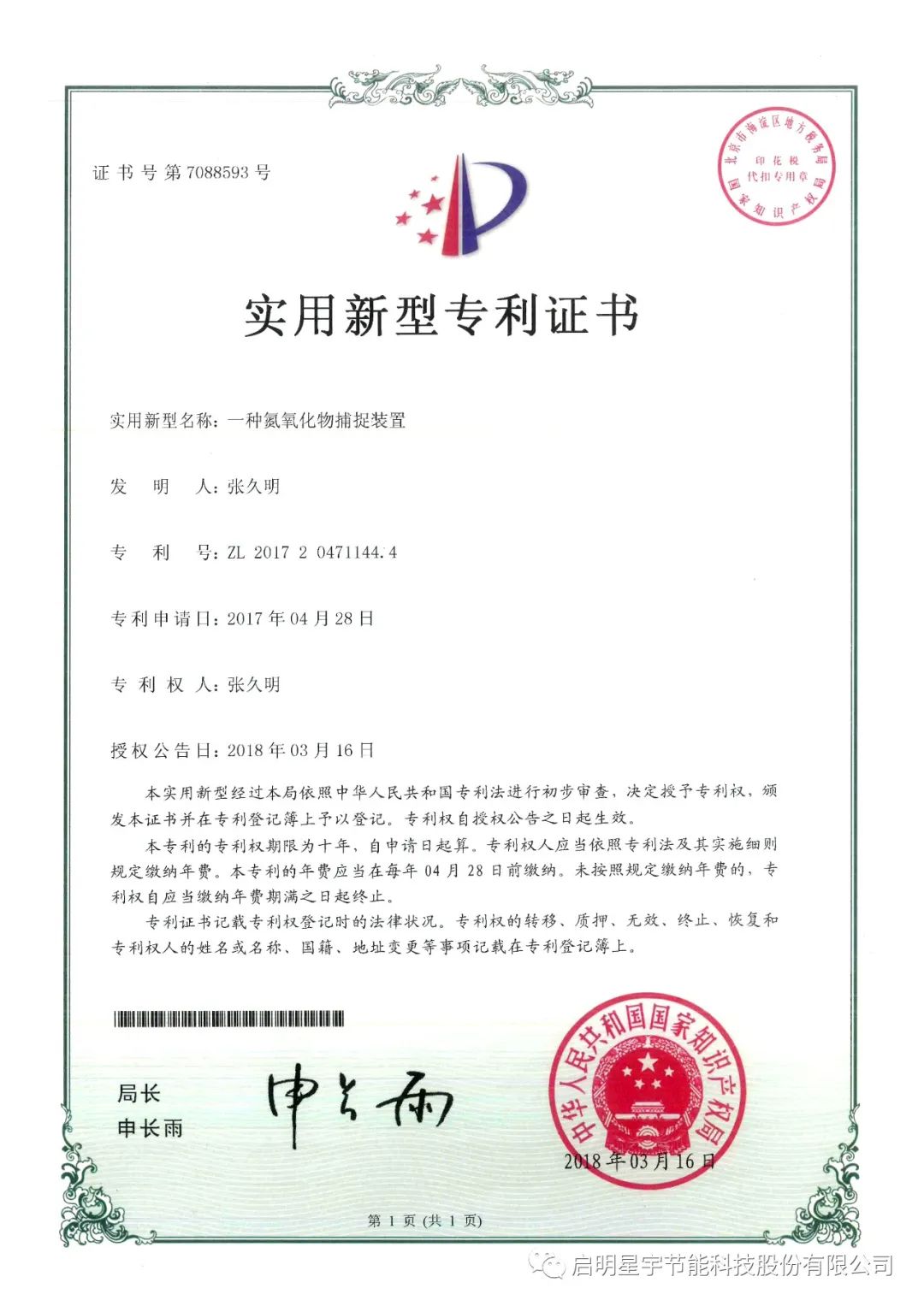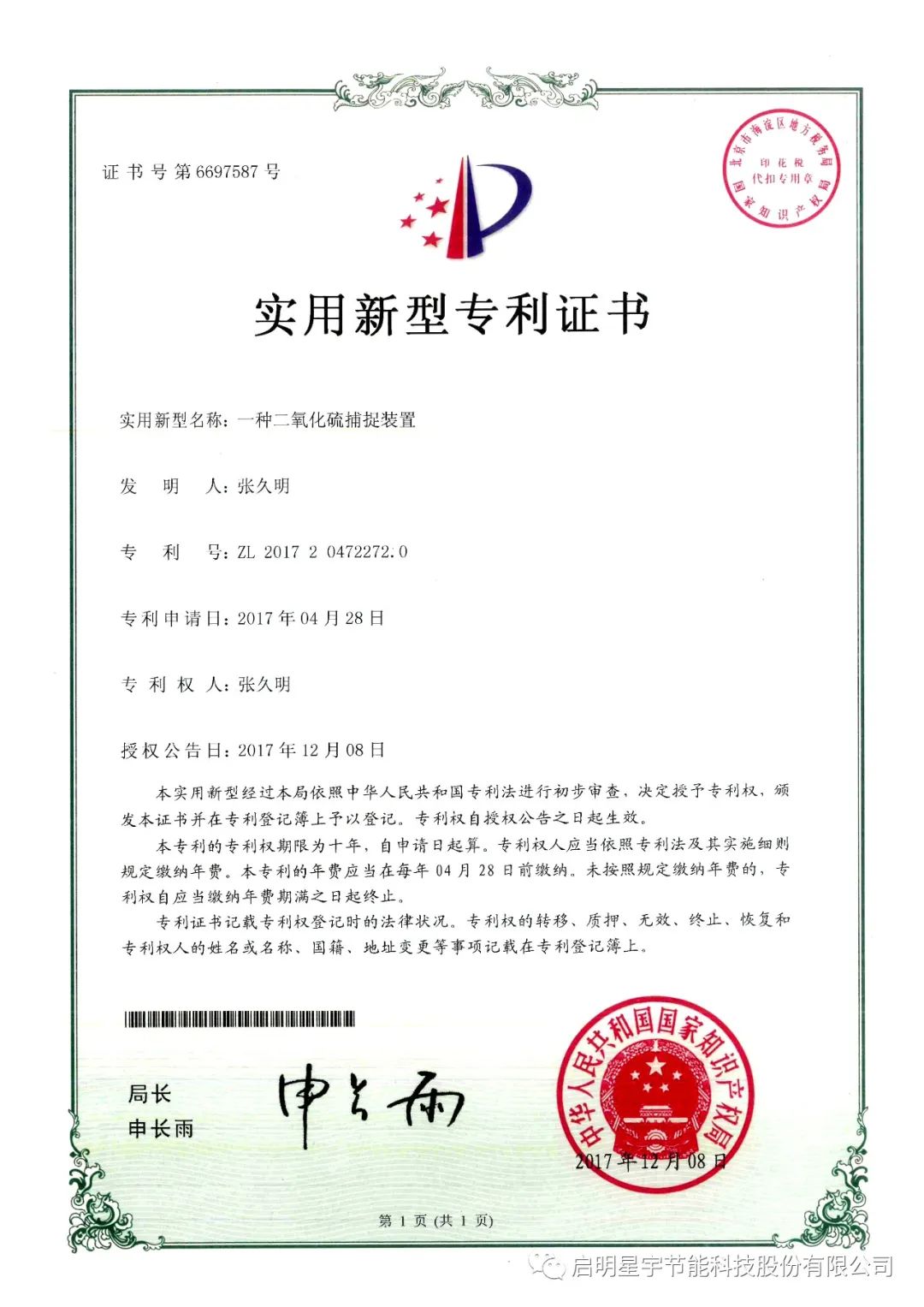 新年巨著,啟明星宇節能科技股份有限公司《工業廢氣零排放技術研究》科研論文在《中國科技人才》期刊成功發表